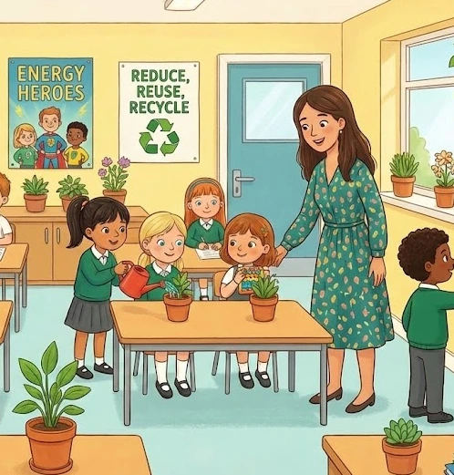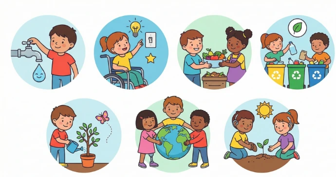Teachers guide students through 7 days of simple green habits, at school, at home, or both.